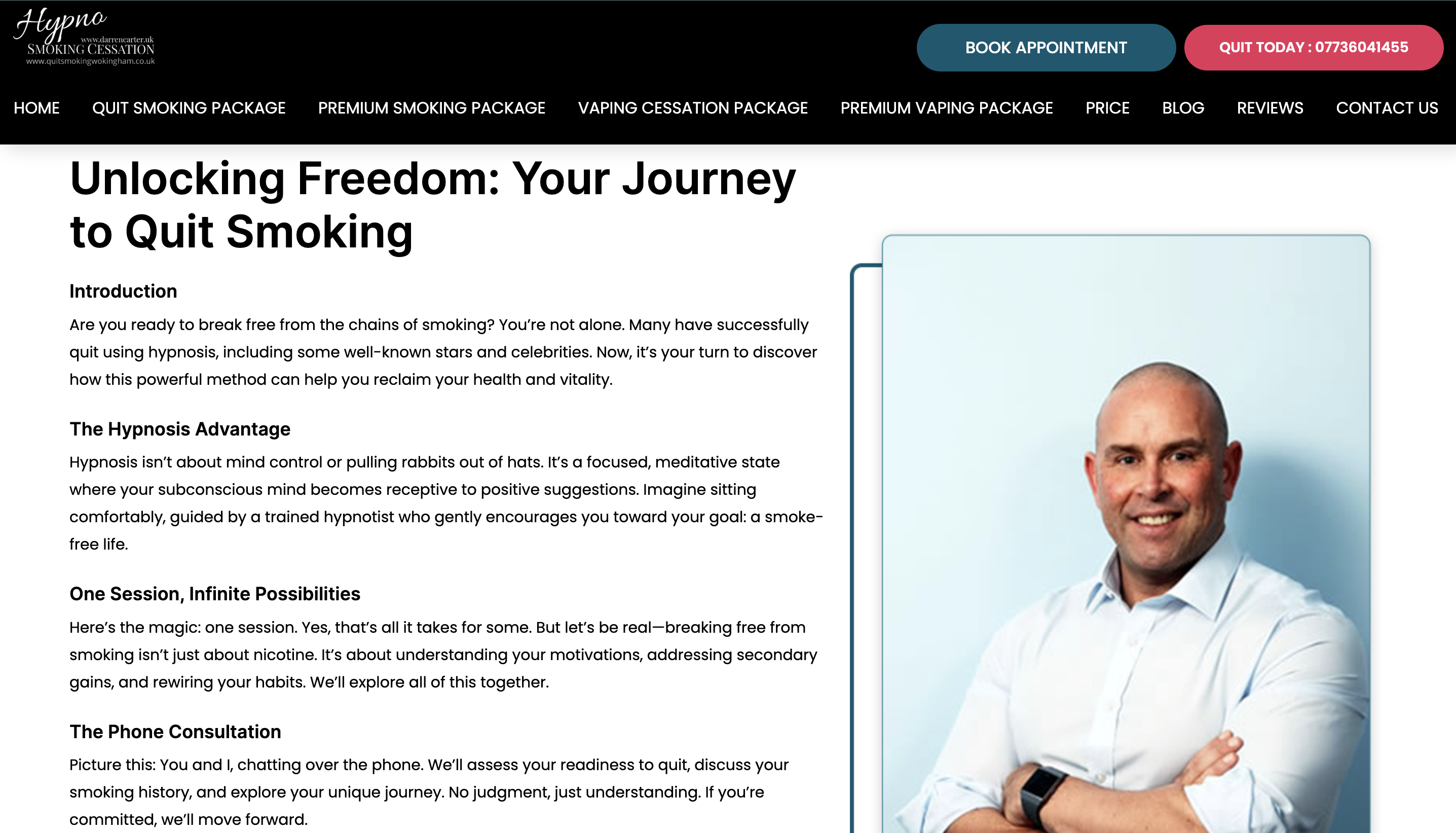 The forefront authority in smoking cessation is excited to announce the re-launch of its website, cutting-edge solutions to break free from nicotine addiction! WOKINGHAM, BERKSHIRE, UNITED KINGDOM, May 31, 2024 /EINPresswire.com/ -- Specializing in hypnosis and quit smoking hypnotherapy, Quit Smoking Wokingham is committed to equipping individuals with the tools they need to lead a healthier, smoke-free life, addressing various smoking habits including cigarettes, roll-ups, cannabis, and vapes through targeted programs. As awareness grows about the harmful effects of smoking on health, Quit Smoking Wokingham stands out as a beacon of hope for those looking to free themselves from nicotine dependence. The newly revamped website, www.quitsmokingwokingham.co.uk, serves as a platform for individuals ready to embark on a journey towards a smoke-free lifestyle, offering valuable information and personalized support tailored to individual needs.